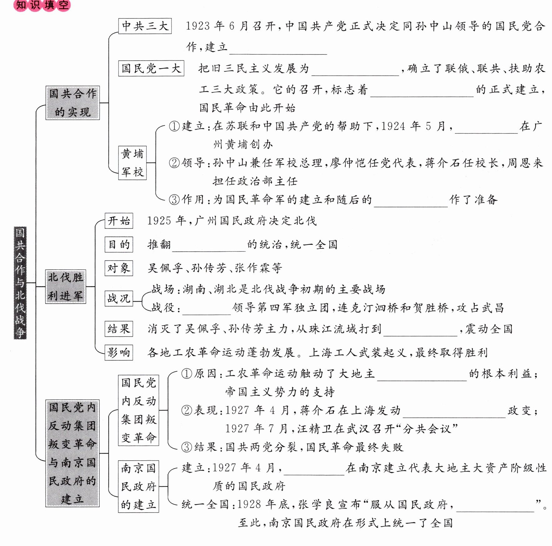 革命统一战线 新三民主义 国共两党合作 孙中山 北伐战争 北洋军阀 叶挺 长江流域 大资产阶级 四一二反革命 蒋介石 改易旗帜