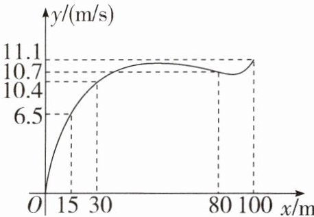 途期”,80m~100m为“冲刺期”.市田径队把运动员小斌某次百米跑训练时的速度y(m/s)与路