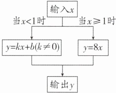 (1)8(2)将(-2,2),(0,6)代入y=kx+b得$\left\{\begin{array}{l} 2=-2k+b,\\ 6=b,\end{array}\right. $解得$\left\{\begin{array}{l} k=2,\\ b=6.\end{array}\right. $(3)令y=0,由y=8x得0=8x,解得x=0<1(舍去),由y=2x+6得0=2x+6,解得x=-3<1,
