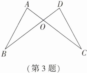 3. 在学习了《全等三角形的判定》后,小龙编了这样一个题目:"如图,已知AB= CD,∠A= ∠D,AO= DO,求证:△ABO≌△DCO."老师说他的已知条件给多了,你帮他去掉一个已知条件:______.