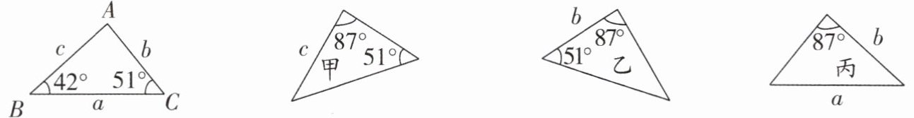 1. 如图,已知△ABC的三条边和三个角,则甲、乙、丙三个三角形中和△ABC全等的是( )