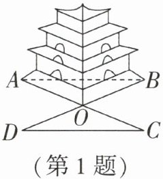 1. 如图,欲测量内部无法到达的古塔相对两点A,B间的距离,可延长AO至C,使$CO= AO$,延长BO至D,使$DO= BO$,则$\triangle COD \cong \triangle AOB$,从而通过测量CD就可得A,B间的距离,其全等的根据是( )