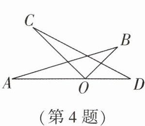 4. 如图,点O在AD上,$\angle A = \angle C$,$\angle AOC = \angle BOD$,$AB= CD$,$AD= 6$,$OB= 2$,则OC的长为 ( )