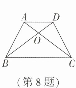 8. 如图,$AC和BD$相交于点O,$AB= DC$,$AC= BD$,则图中全等的三角形共有 ______对,分别是 ______.