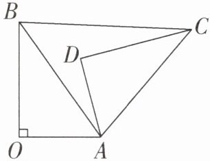 5. 如图,$\triangle AOB \cong \triangle ADC$,点B和点C是对应顶点,$\angle O = \angle D = 90^\circ$,记$\angle OAD = \alpha$,$\angle ABO = \beta$,$\angle ABC = \angle ACB$,当$BC // OA$时,$\alpha与\beta$之间的数量关系为 ( )