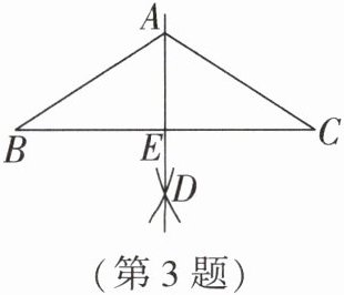 3. (2023·吉林中考)如图,在$\triangle ABC$中,$AB= AC$.分别以点B和点C为圆心,大于$\frac{1}{2}BC$的长为半径作弧,两弧交于点D,作直线AD交BC于点E.若$\angle BAC = 110^\circ$,则$\angle BAE$的大小为 ( )