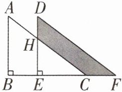10. 如图,两个全等的直角三角形重叠在一起,将其中一个三角形沿着点B到点C的方向平移到$\triangle DEF$的位置,$AB= 6$,$DH= 2$,平移距离为3,则阴影部分的面积是 ______.[