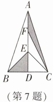 7. 如图,已知AD是等腰三角形ABC底边BC上的中线,BC= 6 cm,AD= 9 cm,点E,F是AD的三等分点,则阴影部分的面积为$______cm^2.$