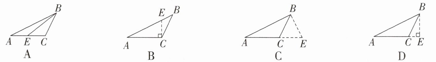 1. 在如图所示的$\triangle ABC$中,正确画出AC边上的高的图形是( )