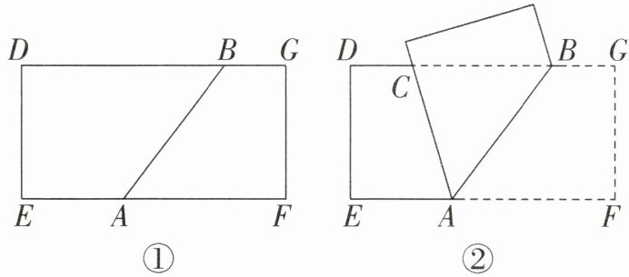 如图①,在长方形纸片 DEFG 上任意画一条线段 AB,将纸片沿线段 AB 折叠(如图②).