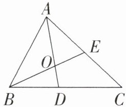 4. 如图,在$\triangle ABC$中,$E为AC$的中点,$AD平分\angle BAC$,$AB:AC = 3:4$,$AD与BE相交于点O$,若$\triangle OAE的面积比\triangle BOD的面积大1$,求$\triangle ADC$的面积.