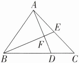 1. 如图,在$\triangle ABC$中,$E是AC$的中点,点$D在BC$上,且$BD = 2CD$,$AD与BE交于点F$,若$S_{\triangle ABF}-S_{四边形CDFE}= \frac{5}{2}$,求$\triangle ABC$的面积.