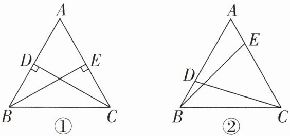 ∴∠ADC = ∠AEB = 90°.在△ACD和△ABE中,$\left\{\begin{array}{l} ∠ADC=∠AEB,\\ ∠A=∠A,\\ AC=AB,\end{array}\right. $