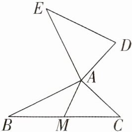 2. 如图,$AB = AE$,$AB \perp AE$,$AD = AC$,$AD \perp AC$,点 M 为 BC 的中点,求证:$DE= 2AM$.