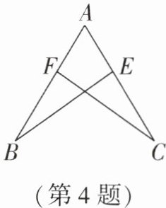 4. 如图,若$\triangle ABE \cong \triangle ACF$,且$AB= 5,AE= 2$,则$EC$的长为______.
