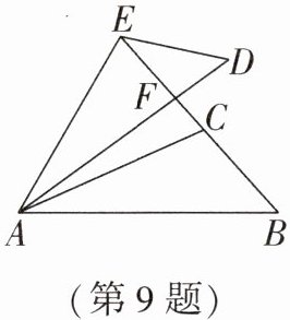 9. 如图,$\triangle ABC \cong \triangle ADE$,线段$BC$的延长线过点E,与线段$AD$交于点F,$\angle AED= 108^\circ$,$\angle CAD= 12^\circ$,$\angle B= 48^\circ$,则$\angle DEF$的度数为______.
