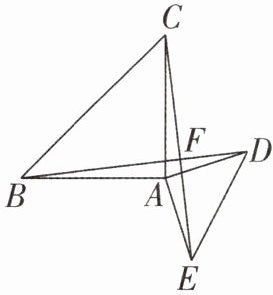 9. (几何直观·推理能力)如图,$AB= AC$,$AD= AE$,$\angle BAC = \angle DAE= 90^\circ$,$BD与EC$交于点F.求证: