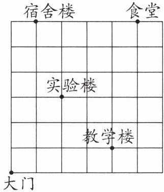 (1)请以大门为坐标原点,以水平向右为x轴的正方向,以竖直向上为y轴的正方向,建立直角坐标系,用坐标表示下列位置:实验楼______,教学楼______,食堂______;