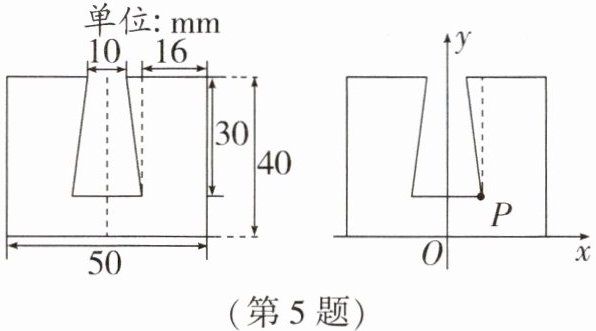 5. (金华中考)小明为画一个零件的轴截面,以该轴截面底边所在的直线为x轴,对称轴为y轴,建立如图所示的平面直角坐标系.若坐标轴的单位长度取1 mm,则图中转折点P的坐标表示正确的是( )
