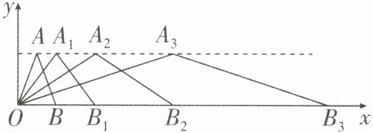 4. 如图,在直角坐标系中,第一次将△OAB变换成$△OA_1B_1,$第二次将$△OA_1B_1$变换成$△OA_2B_2,$第三次将$△OA_2B_2$变换成$△OA_3B_3.$已知$A(1,4),A_1(2,4),A_2(4,4),A_3(8,4),B(2,0),B_1(4,0),B_2(8,0),B_3(16,0).$