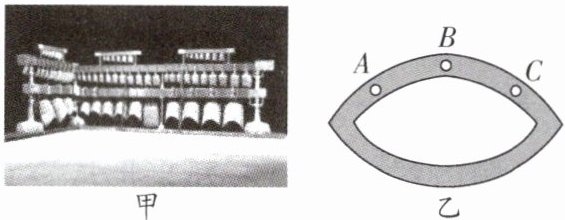 16. 图甲展示的曾侯乙编钟是我国古代的一种打击乐器,青铜编钟依大小次序编组悬挂,形成一定的音阶.演奏者按音谱敲打,可以演奏出美妙的乐曲.编钟越大,音调就越______(填“高”或“低”).形如杏仁状柱体,扁如“盒瓦”的编钟,其截面如图乙所示,分别敲击钟的A、B、C三个部位,A、C位置对称,则编钟可发出______个频率的声音.