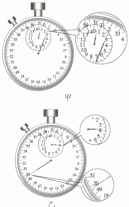 13. 图甲所示机械秒表小表盘的分度值是______,机械秒表的示数是______s.图乙所示机械秒表的示数是______s.