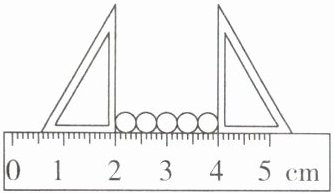 15. 如图所示,某小组为了测量1颗小钢珠的直径,先将5颗小钢珠紧密排成一排,并使用了三角板和毫米刻度尺,读出5颗小钢珠的长度为______cm,通过计算得出1颗小钢珠的直径为______mm,如果测量时没有紧密排成一排,会使测量结果______(填“偏大”“偏小”或“不变”).
