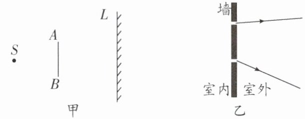 (2)如图乙,室内一盏电灯通过木板隔墙上的两个小洞,透出两条细小光束,请根据这两条光束的方向确定室内电灯的位置.
