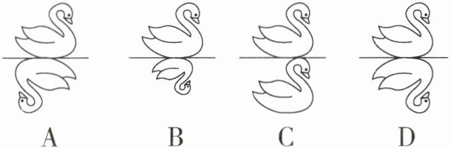 5. 初夏的傍晚,夕阳西垂,小华去公园的湖边散步.暖风微徐,虫鸣鸟叫,还有蜂飞蝶舞,鱼儿嬉戏水中.岸边不远处,一只天鹅正在湖中浮游,身下是一个清晰的倒影,图中,符合小华看到的情景的是 ( )