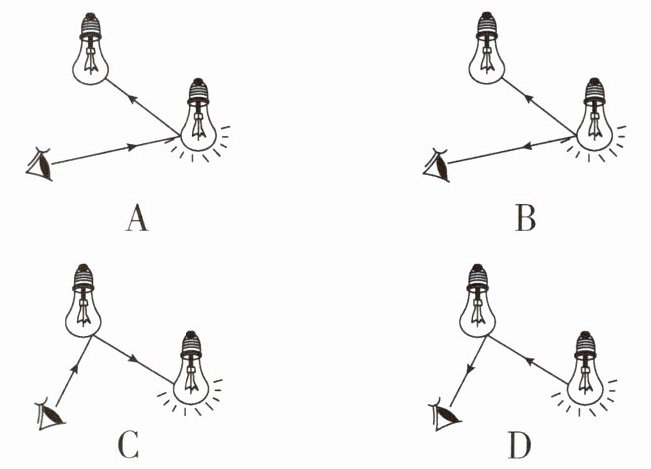 7. 黑暗的房间里有两盏电灯,只有一盏灯点亮,但人能看到未点亮的灯泡.以下对于“看到未点亮灯泡”所画的光路图,正确的是( )