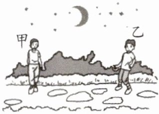 12. 如图所示,雨后的晚上,天刚放晴,地面虽已干,但仍有不少水潭,为了不致踩在水潭里,则 ( )