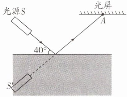 13. (2025·泰安期中)如图所示,固定在水面上方的光源S发出一束光线经水面反射后在光屏上有一个光斑A,已知光束与水面的夹角为40°,S'是光源经水面反射所成的像.下列说法正确的是 ( )