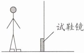 14. 小明在商场买鞋,他选中了一双新鞋在竖直的“试鞋镜”前试穿,如图所示,但在镜中他看不到自己穿着的新鞋的像,为了看到新鞋的像,他应该 ( )