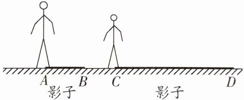 2. 如图所示,请画出形成影子AB和CD的光路图并确认灯泡S的位置.