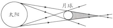 解析:日食形成的原因是当月球转到太阳和地球中间并且三者在一条直线上时,月球挡住了太阳射向地球的光线,地球处在月球的影子里,看不到太阳光.如图,在阴影区域,太阳射向地球的光全部被月球挡住,此区域人们看到的是日全食.