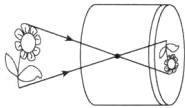3. 如图所示,是利用针孔摄像机拍摄照片的场景,请在图中画出成像光路图并找出针孔的位置.