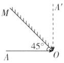 6. 如图所示,物体AO放置在水平面上,A'O是AO在平面镜中的像,A'O在竖直面内,且A'O垂直于AO.请在图中画出平面镜的位置,并标出镜面与水平面夹角的大小.