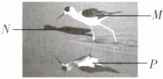 8. 如图所示,阳光下,一只鸟M站在水中.以下说法正确的是( )
