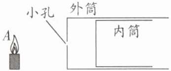 6. 如图所示,用自制的小孔成像装置观察烛焰,薄膜上的像是______(填“正立”或“倒立”)的,若保持小孔和烛焰的距离不变,向左移动内筒,则烛焰的像______(填“变大”“变小”或“不变”).天气晴朗的夏天在树荫下的光斑是光的______形成的,光斑的形状是______(填“树缝的形状”“三角形”或“圆形”).