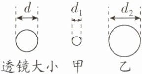 13. 为判别直径相同的两透镜的类型,小明分别将它们正对太阳,把一张纸放在它们的下方,在纸上得到相应的光斑,透镜与光斑的大小如图所示.其中形成甲光斑的______(填“一定”“可能”或“一定不”)是凸透镜,形成乙光斑的______(填“一定”“可能”或“一定不”)是凹透镜.
