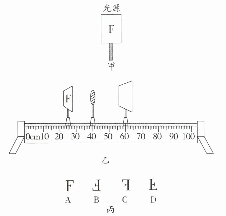 (2)实验中“F”光源和凸透镜的位置如图乙所示,移动光屏得到清晰的像,此像与图丙中的______相同.