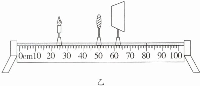 (4)始终保持图乙中凸透镜的位置不变,适当向左移动蜡烛时,应该向______(填“左”或“右”)移动光屏,才能再次得到清晰的像;小勇又向右移动蜡烛至43 cm刻度处,移动光屏,发现光屏上______(填“能”或“不能”)得到清晰的像.