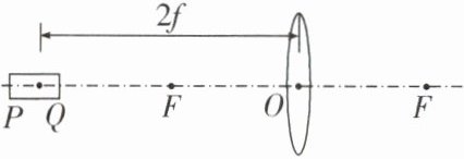 B 解析:圆柱体的右边Q在f和2f之间,所成的像是倒立放大的实像;圆柱体的左边P在2f以外,所成的像是倒立缩小的实像.当u > f时,物距减小,像距变大像变大,右边的像距比左边的像距大,符合要求的只有图B.