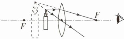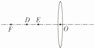 (2)成虚像时,物距越小,像越______(填“大”或“小”).如图所示,物体从D点沿主光轴向透镜移动的过程中(远离焦点),所成的像越来越______(填“大”或“小”).