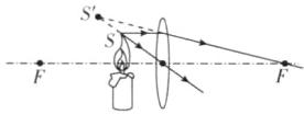 14. 如图所示,在“探究凸透镜成像规律”的实验中,请作出此时烛焰上S点的像S'(保留作图痕迹).