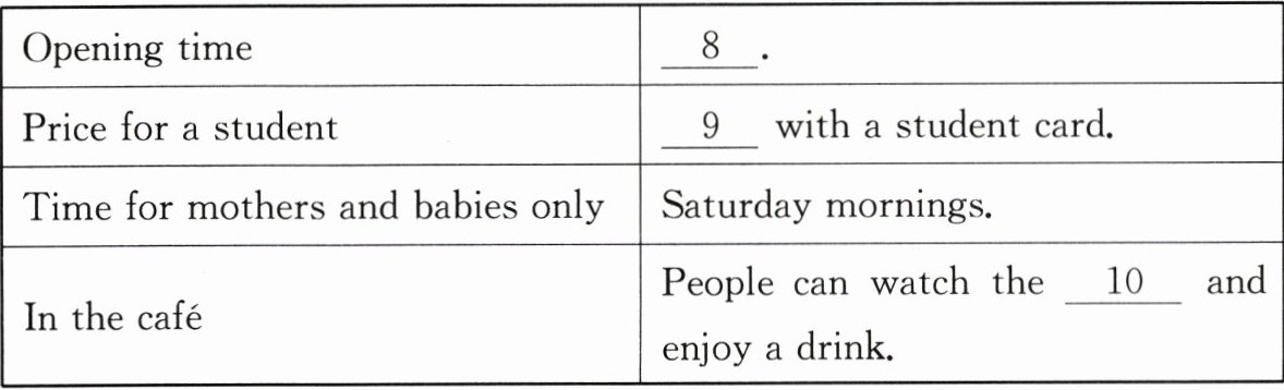 听第一篇短文,完成第8~10小题。请根据短文内容,选择正确答案,完成信息记录表。