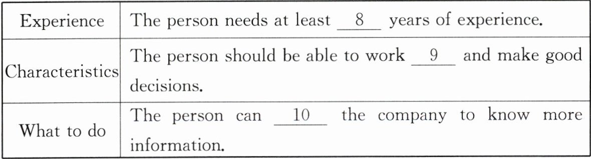 听第一篇短文,完成第8~10小题。请根据短文内容,选择正确答案,完成信息记录表。