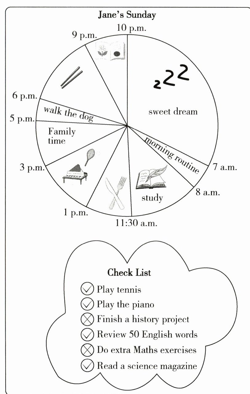 3.C [解析]细节理解题。根据图表可知,简上午8:00到11:30这几个小时是学习时间。故选C。
