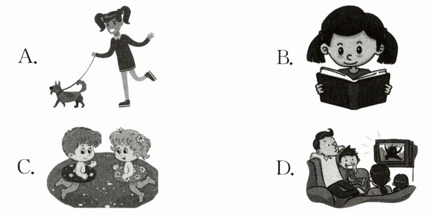 2.D [解析]细节理解题。根据图表可知,简下午3:00到下午5:00是“Family time”,因此她应该是和家人在一起。故选D。