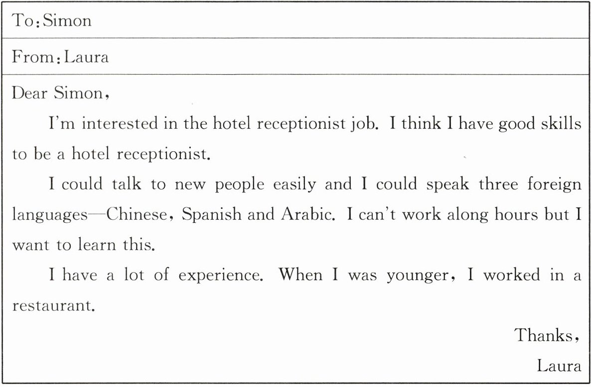 听完故事,劳拉根据自身特点,给西蒙发了一封求职邮件。